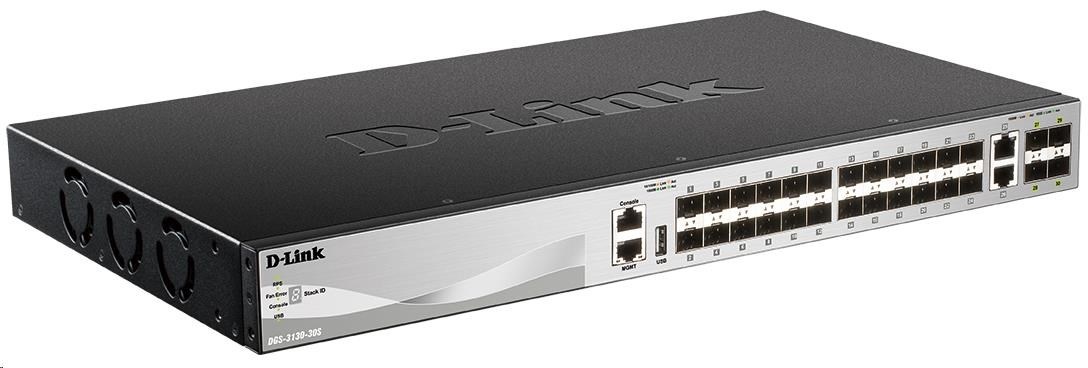 D-Link DGS-3130-30S/SI L3 Stackable Managed Gigabit Switch, 24x SFP, 2x 10GBASE-T, 4x SFP+