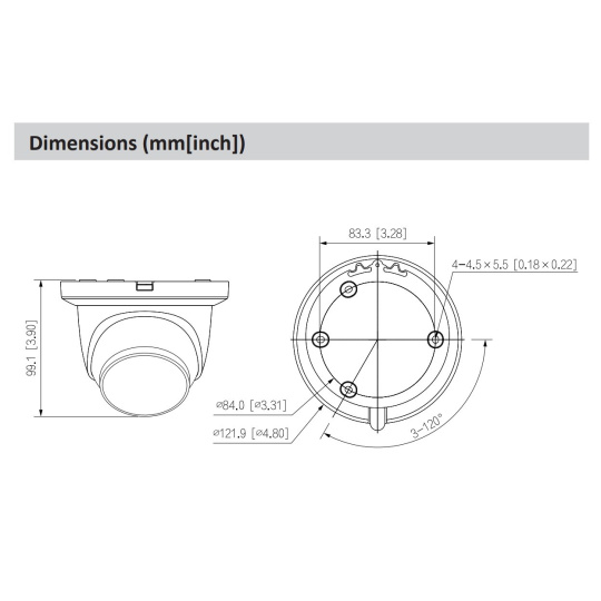 Dahua IPC-HDW5842TM-ASE-0280B-S3, IP kamera, 8Mpx, Eyeball, 1/1.8" CMOS, objektiv 2.8 mm, IR
