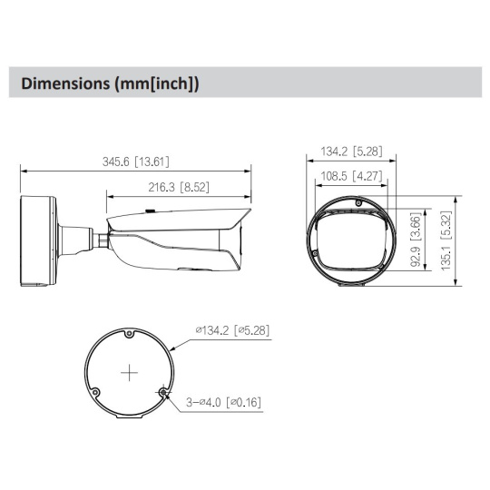 * Níže uvedené parametry a datové listy lze použít pouze pro řadu 5842-Z-S3. Obrazový snímač CMOS 1/1,8" s rozlišením 8 MP, nízkou světelností a vysokým rozlišením obrazu. Výstupy max. 8 MP (3840 × 2160) při 25/30 snímcích za sekundu. Vestavěná infračervená dioda LED a maximální vzdálenost osvětlení je 60 m. ROI, SVC, SMART H.264+/H.265+, AI H.264/H.265, kódování po filtru, flexibilní kódování, použitelné pro různé šířky pásma a úložná prostředí. Režim otáčení, WDR, 3D NR, HLC, BLC, digitální vodoznak, použitelné pro různé monitorovací scény. S algoritmem hlubokého učení podporuje: metadata videa, inteligentní detekci zvuku, IVS, detekci obličeje, inteligentní detekci objektů a počítání osob atd. Alarm: 3 vstupy, 2 výstupy; zvuk: 1 vstup, 1 výstup; RS-485; analogový výstup; výstup napájení; podporuje max. 512 G karty Micro SD, vestavěný duální mikrofon MIC. Napájení 24 VAC/12 VDC/PoE; ePoE. Krytí IP67, IK10. SMD 3.0..