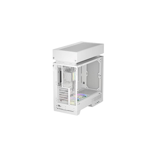 CL6600 WH přináší nový pohled na design skříní pro éru kapalinového chlazení. Fyzickým oddělením tepelných zón a cest proudění vzduchu zabraňuje hromadění tepla a vzájemnému rušení, kterému se u konvenčních uspořádání nelze vyhnout. Je také vybaven pokročilým 360mm kapalinovým chladičem a dvěma spodními ventilátory ARGB, které zajišťují vysoký výkon a vytvářejí živý interiér.