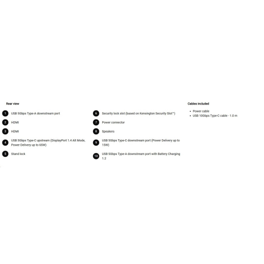• 1 USB-C 5Gbps upstream port (DisplayPort 1.4 Alt Mode, Power Delivery up to 65 W)