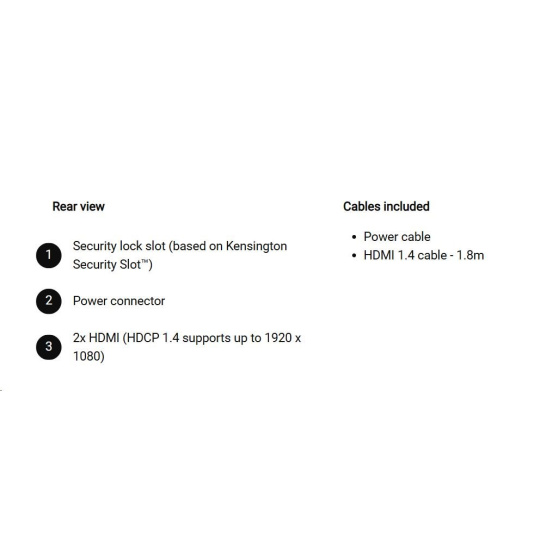 | 2 HDMI port (HDCP 1.4) (Support up to FHD 1920 x 1080 144 Hz as specified in HDMI 1.4) |
