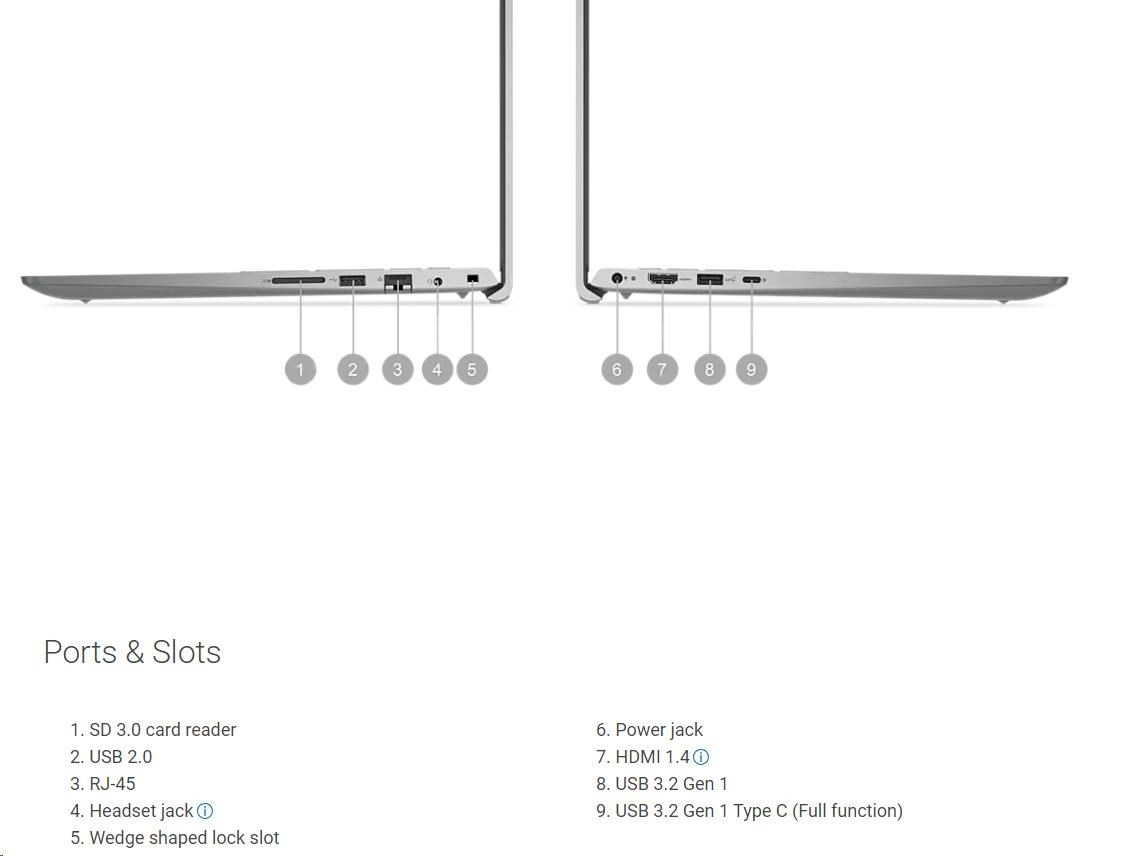 1. SD 3.0 card reader 6. Power jack Upozornenie: U tohto modelu podporuje USB-C iba prenos dát. Nepodporuje dokovanie, obrazový výstup (DisplayPort), ani funkciu PD (Power Delivery). |