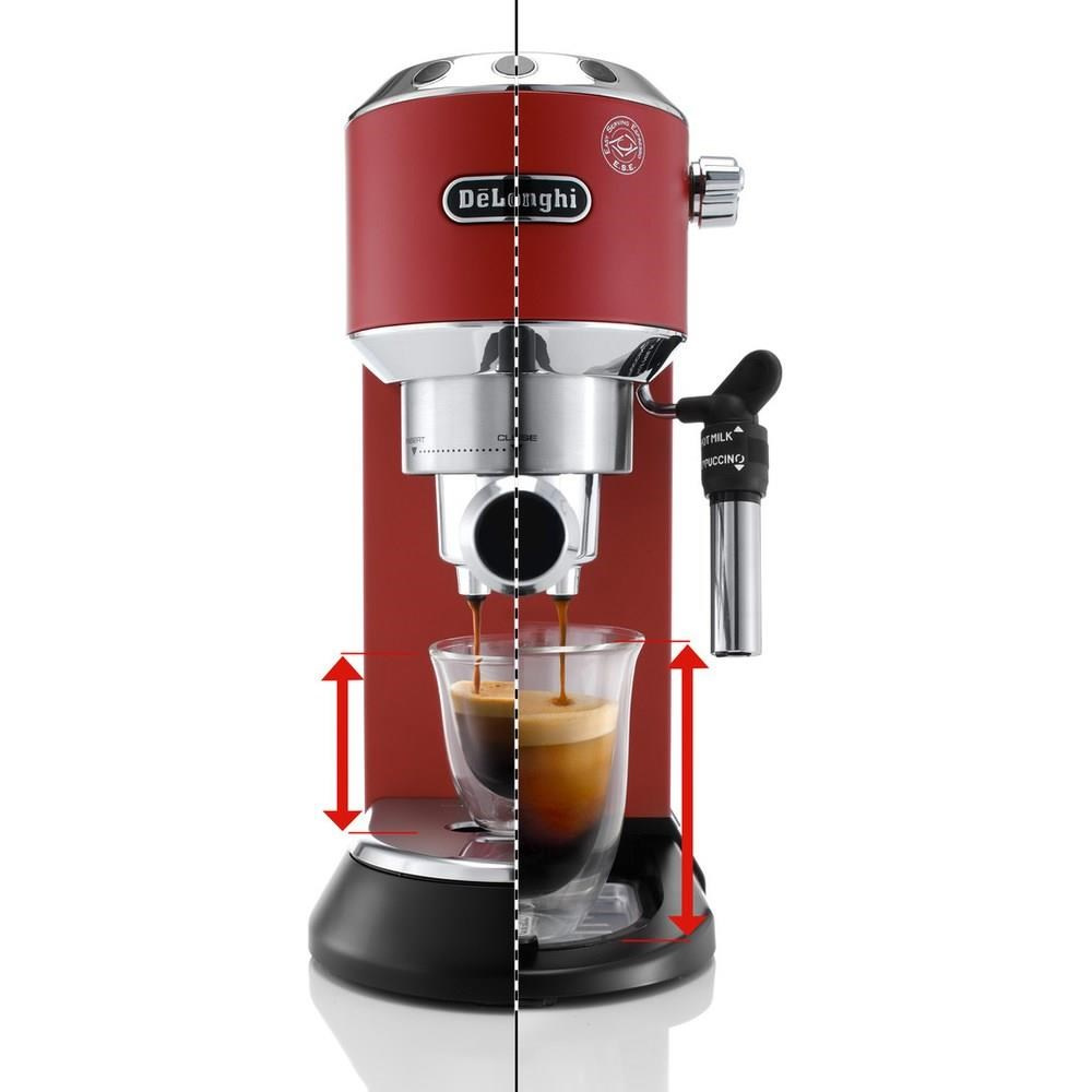 Nastavitelná výška odkapávacího tácku umožňuje používání různě vysokých šálků, dokonce až 12 cm. Můžete připravit kávu do elegantních sklenic na latte macchiato nebo do svého oblíbeného hrnečku. Ideální teplota podávané kávy je garantována, nejen díky možnosti nastavit jednu ze tří úrovní teploty kávy. Nadto kávovar De'Longhi pasivně nahřívá šálky na určené odkládací ploše tím, že je sám o sobě zahřátý, čímž předává teplo dále šálkům. Objem nádržky na vodu je 1,1 l.