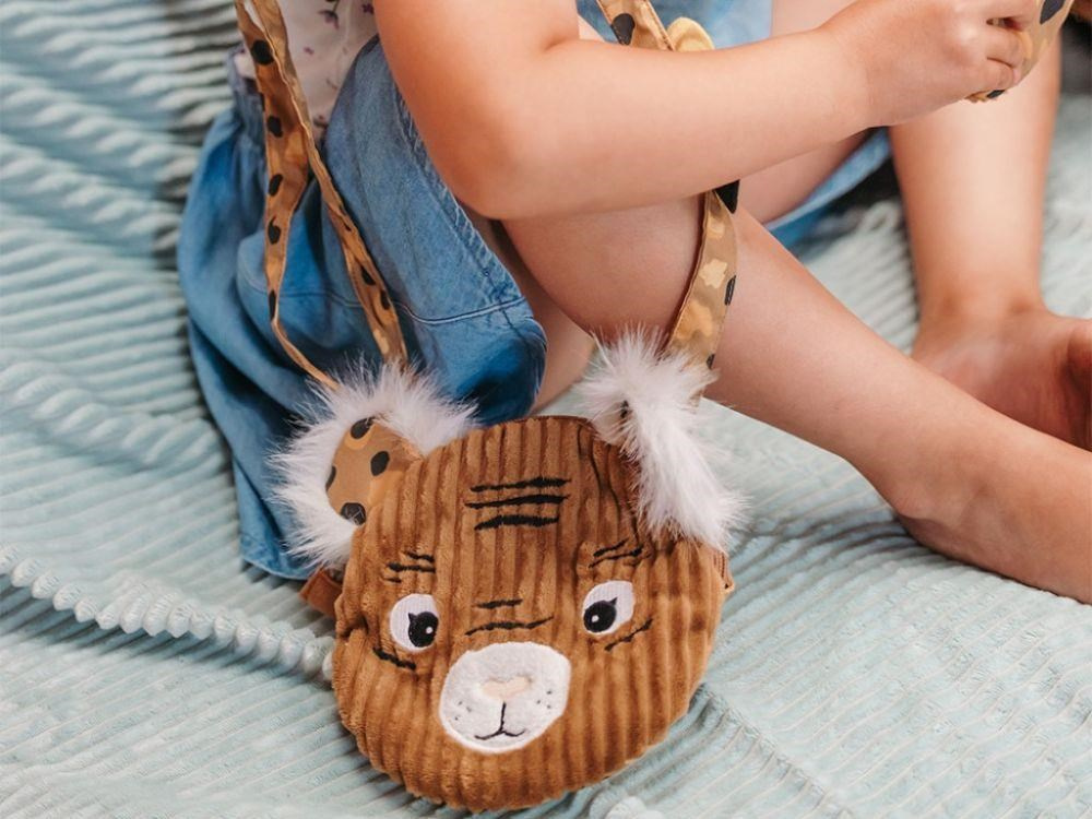 Dětská kabelka v podobě roztomilého tygra je malým zavazadlem, do kterého si děti uloží vše potřebné na pobyt venku, na výlet i na dovolenou. Kabelka pro děti má nastavitelný ramenní popruh a zapínání na zip..
