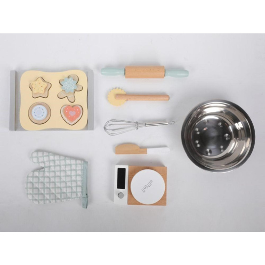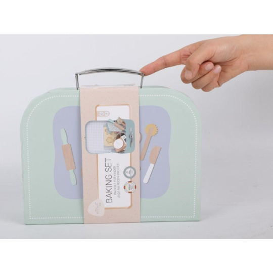 Dětská sada na pečení uložená v praktickém kufříku umožní dětem péct perníčky a sušenky kdekoliv se jim zachce - v kuchyni, v dětském pokoji, dětské kuchyňce, v zahradním domečku a klidně i na návštěvě u kamaráda nebo babičky, bezpečným dětským způsobem. Obsahuje vše potřebné pro upečení lahodné svačinky, kuchyňskou váhu, nádobí, náčiní, těsto i rukavici. Kufřík umožní dětem celou sadu rychle uklidit i přenášet..