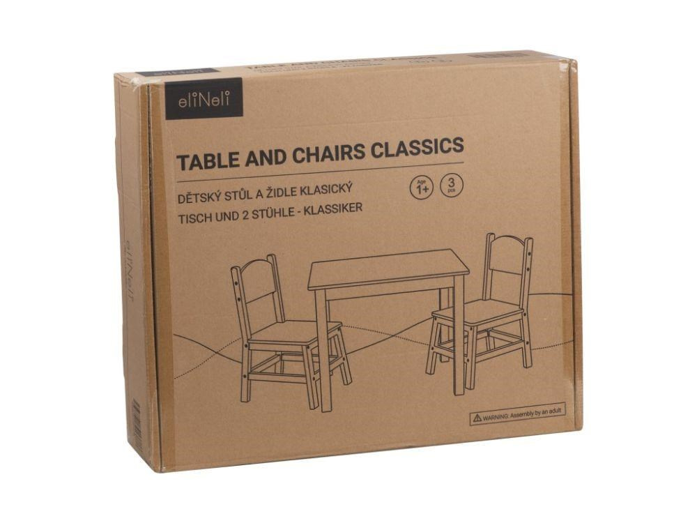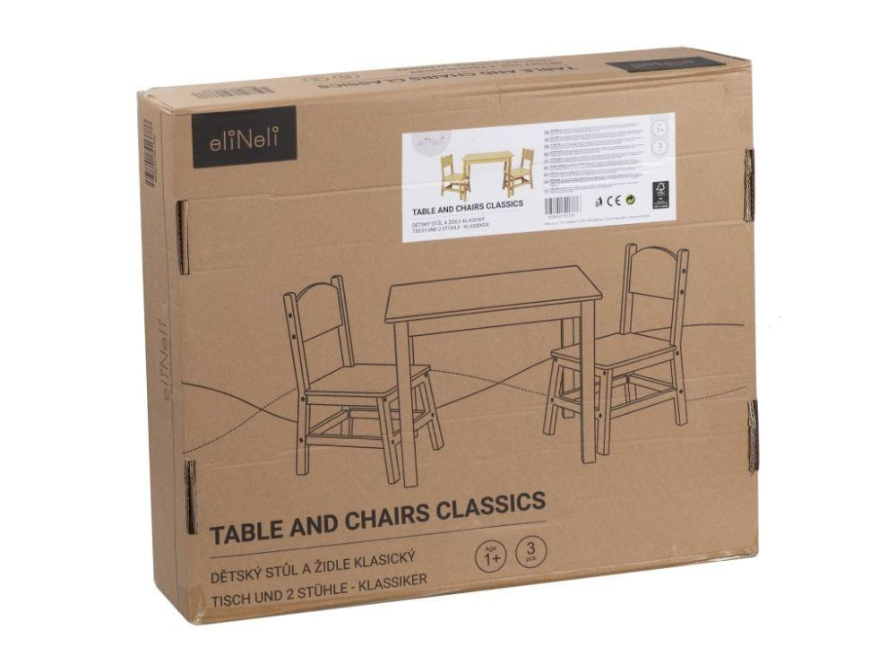 Dětský stolek a 2 židle, v klasickém designu, je krásným a praktickým setem dětského nábytku do dětského pokoje, kuchyně, jídelny i hracího koutku. U stolečku si mohou děti malovat a kreslit, tvořit, prohlížet oblíbené knihy, hrát si nebo si dát svačinku. Dětský stůl a židle v přírodním (natur) provedení je vhodný pro holčičky i kluky, do každého interiéru..