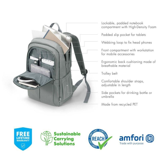 DICOTA Eco Backpack SCALE 13-15.6 grey