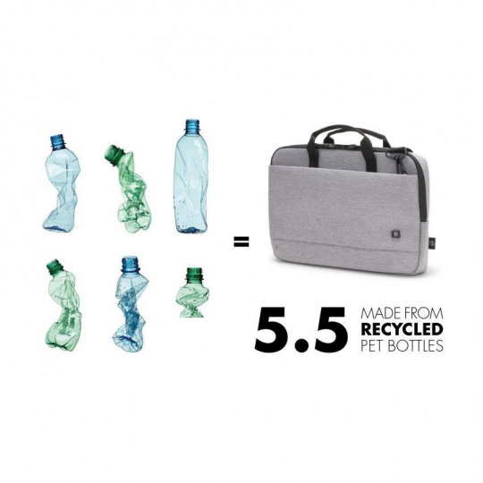 Laptop Case Slim Eco MOTION 14 - 15.6" Light Grey Light notebook case with protective padding Today's actions shape tomorrow's world. Which is why, here at DICOTA, we are dedicated to developing environmentally friendly solutions and therefore make all the items in our ECO collections out of sustainable, recycled PET. We reuse up to 31 PET bottles, so you will receive an environmentally friendly product with a life-long guarantee. Our PET products also have the quality, look and finish that you know and love. Specifications Art.no.: D31873-RPET EAN: 7640186418188 Weight: 0.6 kg Material: 600D RPET Polyester Warranty: Lifetime / 30 years Dimension: 405 x 45 x 290 mm Max. Device dimensions: 385 x 30 x 265 mm Characteristics • Made of 5.5 recycled PET bottles • Padded notebook compartment with high density foam (HDF) • Slip pocket for tablets up to 12.9" • Front pocket with storage space for mobile accessories • Document compartment on the back • Comfortable padded handle • Removable, adjustable shoulder strap • Water-repellent material.