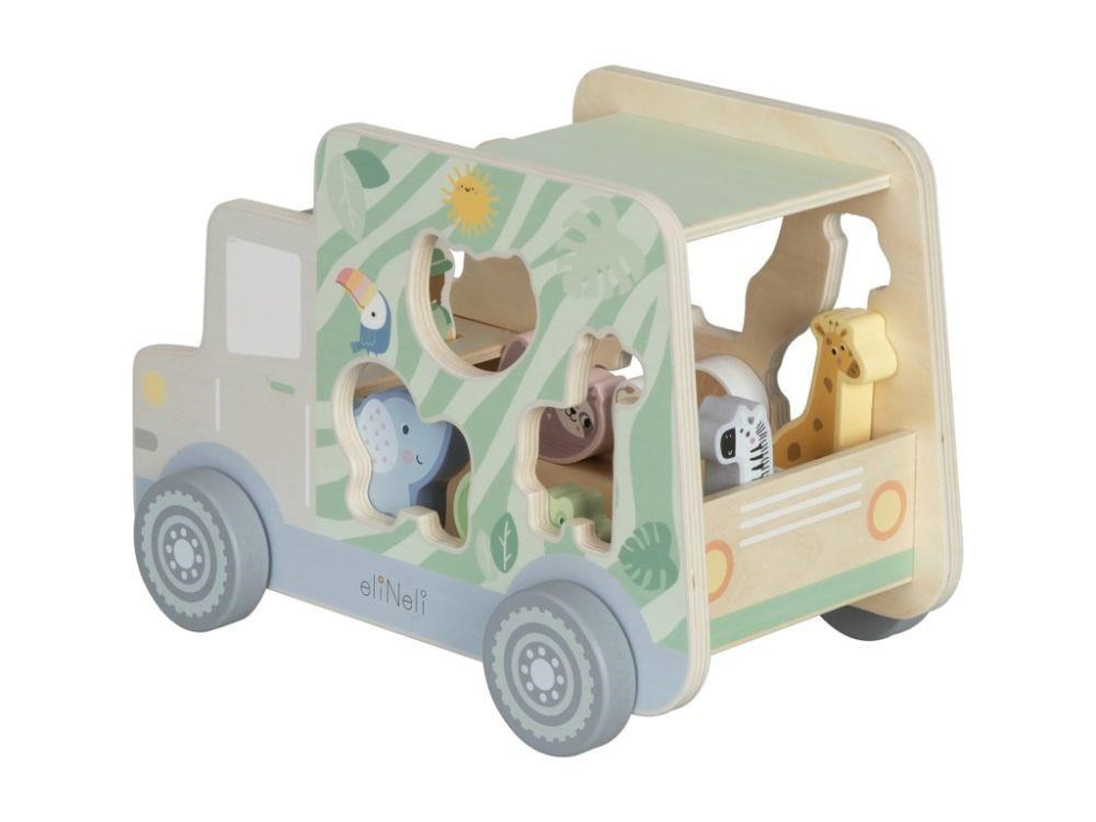 Dřevěné autíčko 2v1 nabízí spoustu možností ke hře. Velké autíčko je parádní hračkou samo o sobě, ale protože se jedná o multifunkční dětskou hračku, je zároveň i originální vkládačkou s dřevěnými vkládacími dílky v podobě zvířátek ze ZOO. Děti při nakládání zvířátek a při hře s autíčkem zdokonalují jemnou motoriku, koordinaci očí a rukou, logické myšlení..
