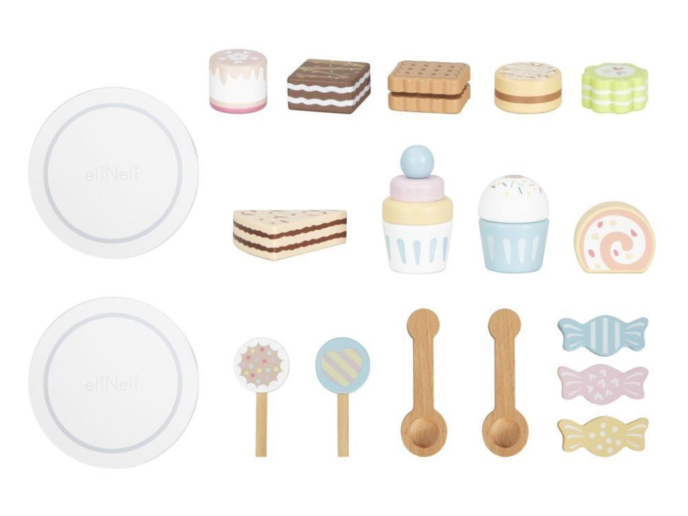 Dřevěný patrový stojan s lahodně vypadajícími dřevěnými zákusky a cukrovinkami je jako stvořený pro oslavy a čajové dýchánky uspořádané pro rodiče, kamarády i oblíbené plyšáky. Dřevěný stojan s bohatým příslušenstvím je skvělým doplňkem do dětské kuchyňky i obchůdku. Děti si mohou zahrát na cukráře i prodavače, rozvíjet svou fantazii a zdokonalovat dovednosti..