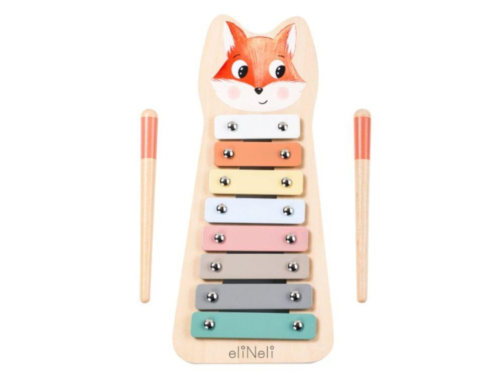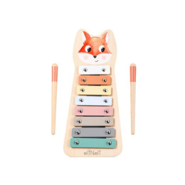 Roztomilý dřevěný xylofon s motivem lišky okouzlí děti jemnými pastelovými barvami. Kovové destičky na liščím bříšku se při úderech dřevěnou paličkou (součástí balení jsou 2 paličky) rozezní a přenesou malé hudebníky do světa tónů a barev hravou a zábavnou formou.