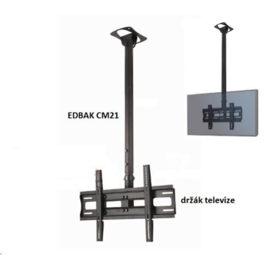 Technické údaje: nosnost 80kg doporučená velikost Tv 50"-71" VESA standard 100x100 až 800x460 minimální vzdálenost od stropu 130cm maximální vzdálenost od stropu 210cm náklon nahoru i dole +6,5°/ -12,5° otočný do stran +90° / -90° profesionální konstrukce materiál silnostěnná ocel barva černá nebo stříbrná záruka 5 let Stropní držák EDBAK CM21-TWB1 podporuje VESA standardy: VESA 100x100 VESA 200x100 VESA 200x200 VESA 300x200 VESA 300x300 VESA 400x200 VESA 400x300 VESA 400x400 VESA 600x400 VESA 800x400.