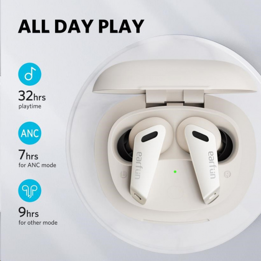 ANC Mode- Up to 7 hours, Totally 25 hours with the charging case; (varies by volume level and audio content)
