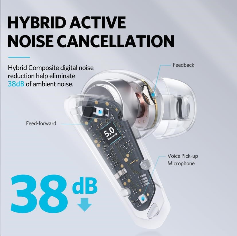 • QuietSmart™ Hybrid Active Noise Cancellation up to 38dB