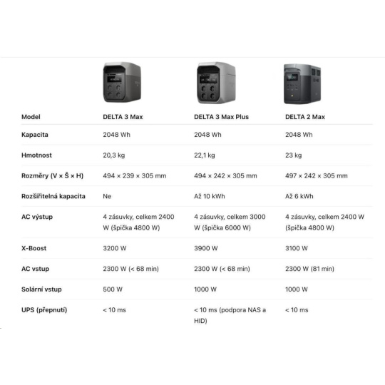 DELTA 2 Max, DELTA 3 Max Plus, DELTA Pro 3, DELTA 3 přídavná baterie