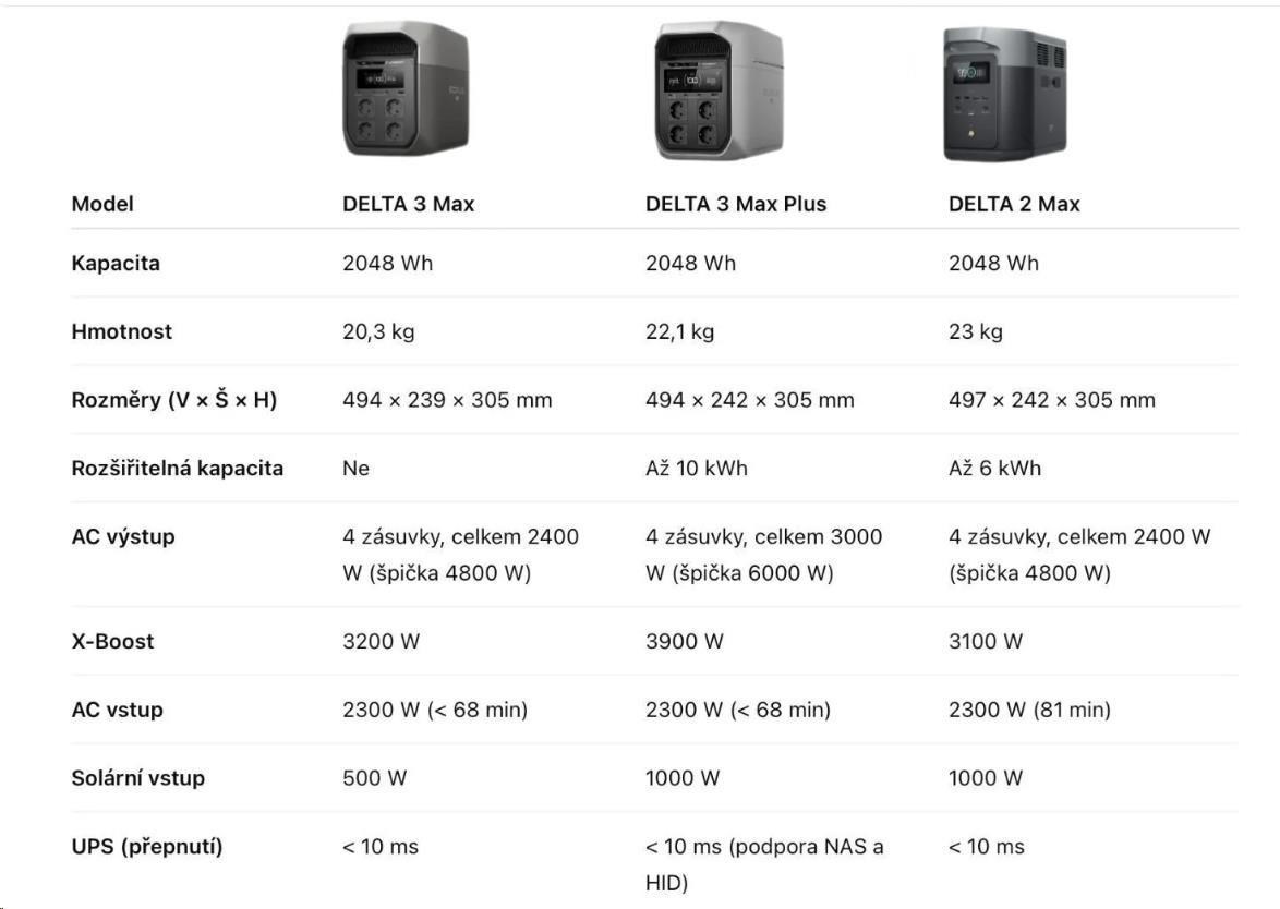 DELTA 2 Max, DELTA 3 Max Plus, DELTA Pro 3, DELTA 3 přídavná baterie
