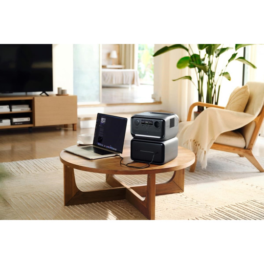 Toto balení obsahuje tu nejvyšší možnou variantu – RIVER 3 Plus spolu s přídavnou baterií Smart Extra Battery EB600 (572 Wh), což dohromady zajišťuje maximální kapacitu 858 Wh.