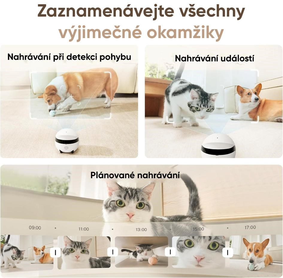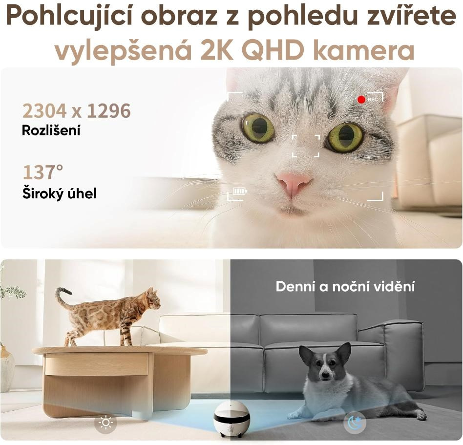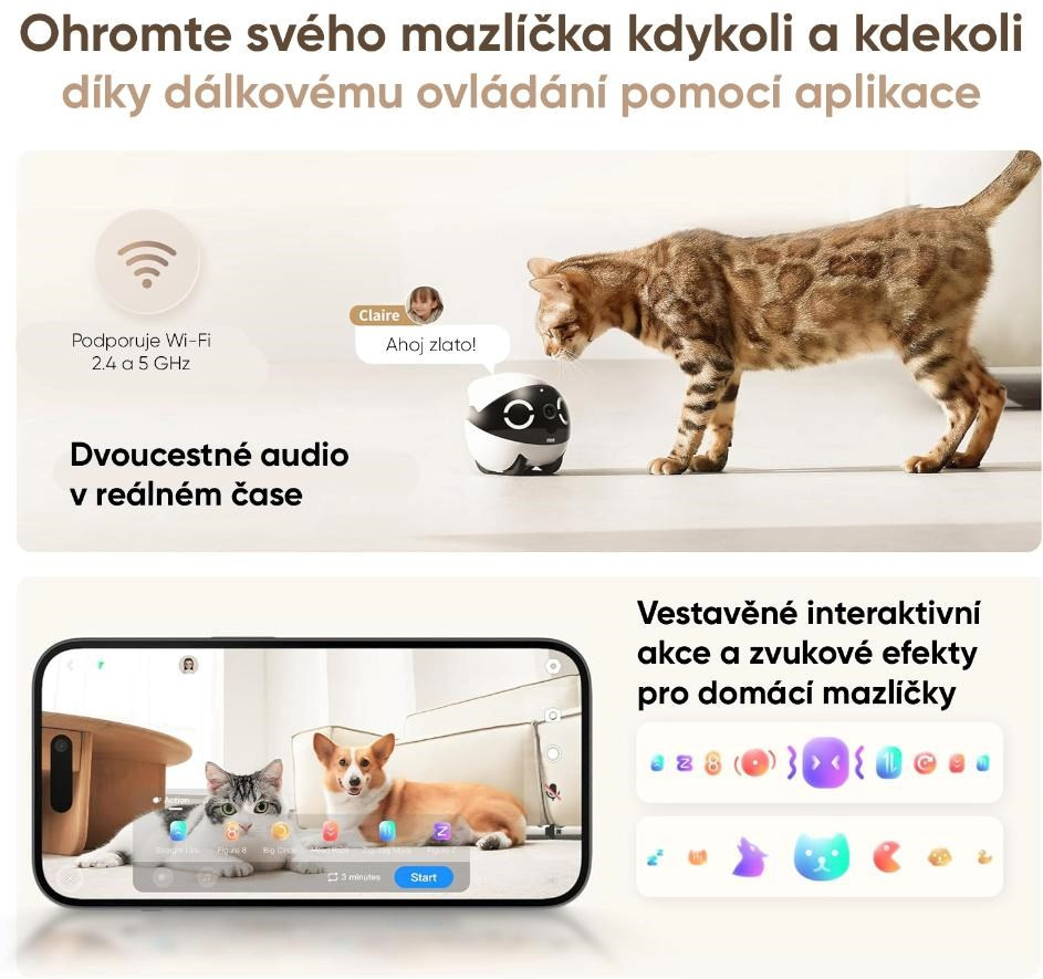 - Všestranné využití – skvělý pro zábavu domácích mazlíčků, komunikaci s dětmi i jako mobilní domácí kamera.