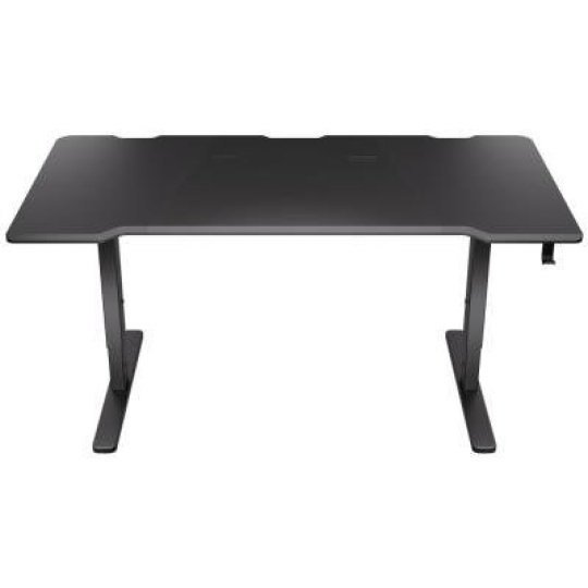 Herní stůl o délce 150 cm a šířce 78 cm nabízí dostatek prostoru pro myš, klávesnici a další příslušenství. Výšku lze nastavit ve čtyřech krocích (72, 75, 78 a 80 cm) tak, aby odpovídala vašim potřebám. Na spodní straně desky je umístěn systém pro správu kabelů, které lze následně vést průchodkami v nohách stolu. Maximální stabilitu zajišťuje robustní ocelová konstrukce s nosností až 80 kg. Povrchová úprava desky stolu ve stylu uhlíkových vláken nejen dobře vypadá, ale je také odolná proti poškrábání. V neposlední řadě zajisté potěší kovová polička pro napájecí lištu na zadní straně a háček pro zavěšení sluchátek.