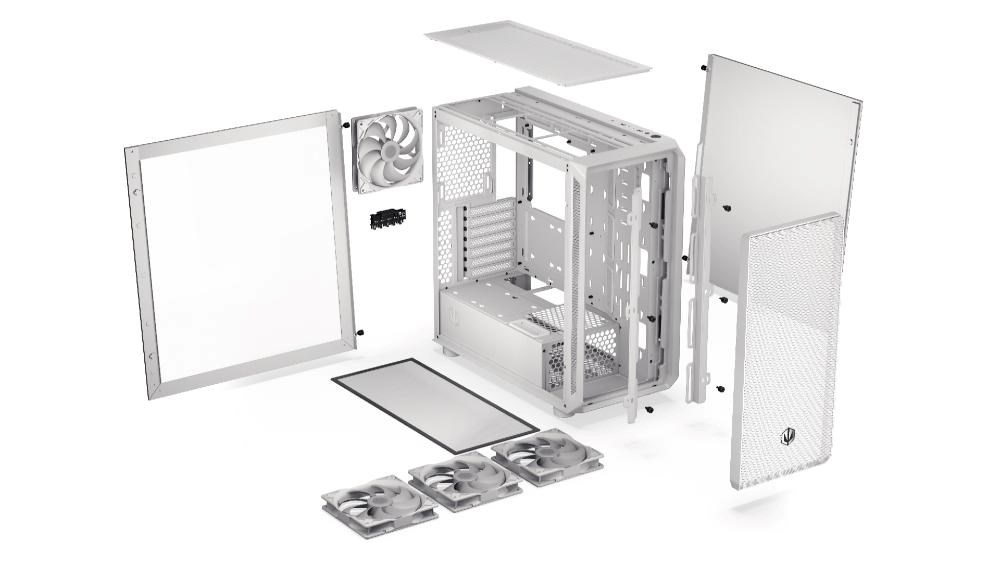 Arx 700 White ARGB je bílé šasi kompatibilní se základními deskami ATX a menšími deskami. Skříň je určena pro špičkové komponenty, podporuje chladiče o průměru až 360 mm a pojme až 8 ventilátorů - včetně 4 předinstalovaných jednotek Stratus 140 White PWM ARGB, které zajišťují tichý provoz a výkonné proudění vzduchu.