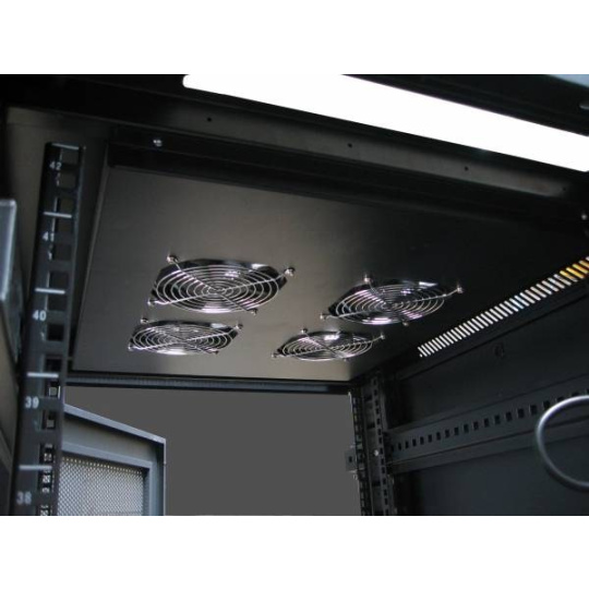 Rozvaděč je standardně vybaven výškově přestavitelnými policemi (3ks pro 42U), panelem se zásuvkami 230V, ventilační jednotkou a sadou spojovacího materiálu. Plechové uzamykatelné dveře na přední i zadní stěně. Odnímatelné boční kryty s možností montáže zámku. Dodáváno v rozloženém stavu.