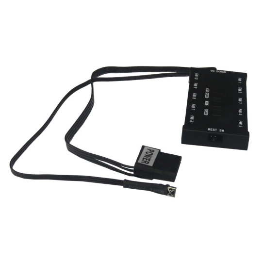 - řídící jednotka umožňuje připojení až 10ks ventilátorů a ovládání tlačítky přímo na jednotce, napájení jednotky přes konektor "molex" z PC zdroje