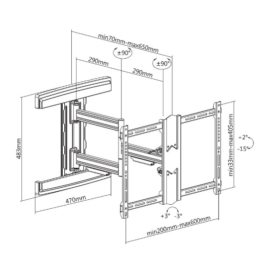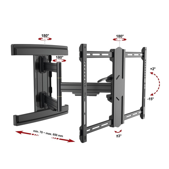 Profesionální držák na Tv 43-80", nejvyšší kvalita, otočný +/-90°, sklopný +2°/-15°, vzdálenost Tv od zdi 7-65cm, VESA 200x100 až 600x400, nosnost 50kg.... více