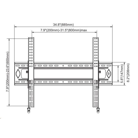Technické údaje: maximální zatížení 90kg na obrazovky s úhlopříčkou 55" až 90" podpora VESA standardů 200x200 až 800x600 náklon obrazovky nahoru až +5° náklon obrazovky dolů až -15° zajištění obrazovky v požadovaném úhlu sklonu vzdálenost Tv od stěny 72mm automatický systém zajištění obrazovky proti vysazení a náhodnému pádu uvolnění pomocí 2 táhel, která jsou uschována za obrazovkou kvalitní bezpečná konstrukce robustní materiál TOP kvalita, profesionální zpracování, 100% funkčnost barva černá záruka 10 let Držák podporuje VESA standardy: VESA 200x200 VESA 300x200 a 200x300 VESA 300x300 VESA 400x200 a 200x400 VESA 400x300 a 300x400 VESA 400x400 VESA 600x400 a 400x600 VESA 800x400 VESA 800x600 Profesionální sklopný držák Fiber Mounts D90 je vhodný pro zavěšení všech typů televizorů a monitorů, které podporují kterýkoliv z výše uvedených VESA standardů a jejichž hmotnost není vyšší jak 90kg. Doporučená úhlopříčka Tv a monitorů je 55-90 palců, může však být i větší..