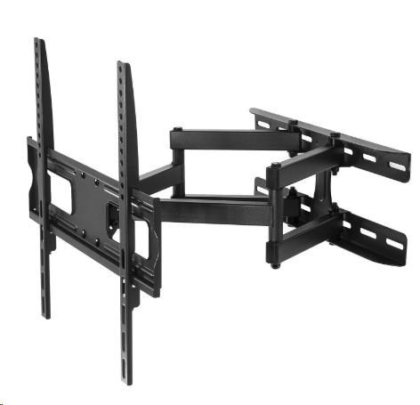 Levný ale kvalitní otočný, sklopný a délkově nastavitelný držák na televize 26-55" Držák robustní a velmi pevné konstrukce, který Vás mile překvapí svou nízkou cenou, která ale nebyla na úkor kvality. Držák má nosnost 30kg a podporuje VESA standardy 100x100 až 400x400. Je ideální pro bezpečné a spolehlivé zavěšení televizorů s úhlopříčkou 26-55" na zeď. Se zavěšenou televizí můžete otáčet na obě strany, naklápět ji nahoru nebo dole a měnit její vzdálenost od zdi - přisouvat, odsunovat, což je ideální v případě zapojování kabeláže nebo při utírání prachu. Kdykoliv máte přístup k zadní straně televize nebo k jejím bokům, což u sklopných nebo fixních držáků nelze a televizi musíte vždy sundat ze stěny. Držák má ocelovou konstrukci, která je robustní a bezpečná, barevné provedení je černé. V balení kromě samotného držáku naleznete i instalační sadu. Levný držák na televizi LCD LED plazmovou 3D nebo prohnutou, doporučená úhlopříčka 26-55 palců. Bezpečné zavěšení televize na stěnu, můžete s ní otáčet na obě strany, naklápět ji nahoru nebo dole a odsunovat nebo přisunovat ke zdi. Fiber Mounts DELTA760 / drzakyastolky.cz Technické údaje: nosnost 30kg podporuje VESA standardy 100x100 až 400x400 ideální pro zavěšení televizí a monitorů s úhlopříčkou 26-55" otáčení na obě strany +/- 75° náklon obrazovky nahoru nebo dole +/- 15° nastavení vzdálenosti od zdi 70-460mm pevná ocelová konstrukce spolehlivé a bezpečné zavěšení televizoru na zeď barva černá záruka 2 roky Držák Fiber Mounts DELTA760 podporuje VESA standardy: VESA 100x100 VESA 200x100 a 100x200 VESA 200x200 VESA 300x100 a 100x300 VESA 300x200 a 200x300 VESA 300x300 VESA 400x200 VESA 400x300 VESA 400x400 Nástěnný levný držák Fiber Mounts DELTA760 je ideální pro zavěšení všech typů a velikostí televizorů nebo monitorů, které mají hmotnost do 30kg a které podporují některý z výše uvedených VESA standardů..