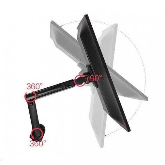 Profesionální stolový plně polohovatelný držák na monitory a televizory s úhlopříčkou 17-32" Nabízíme Vám špičkový držák na televizi nebo monitor s uchycením na stolovou desku, který je plně polohovatelný - otáčení do stran, nastavení náklonu, výšky a vzdálenosti od uchycení, otáčení obrazovky do horizontální nebo vertikální polohy. Držák je ideální pro zavěšení všech typů televizorů a monitorů s úhlopříčkou 17-32" a hmotností maximálně 8kg. Nastavení výšky umožňuje plynová pružina, kterou snadno nastavíte na hmotnost 2-8kg. Polohování obrazovky je velmi snadné a příjemné, zvládnou to i děti. Držák má systém pro vedení kabeláže a připojení USB portů. Barevné provedení černé. Záruka 3 roky. Technické údaje: nosnost 8kg minimální zatížení 2kg držák podporuje VESA standardy 75x75 a 100x100 možnost zakoupení rozšíření na VESA 200x100 nebo 200x200 ideální pro zavěšení monitorů a televizorů s úhlopříčkou 17-32" otáčení do stran +/- 180° náklon + 55° až - 8° funkce PIVOT - otočení obrazovky na délku nebo na výšku (horizontálně nebo vertikálně) nastavení vzdálenosti od uchycení na stolovou desku max. 643mm výškové polohování 280mm minimální výška od stolu 250mm maximální výška od stolu 530mm systém vedení kabeláže 2x USB port 2 typy uchycení na stolovou desku (na okraj, do prostoru) uchycení na stolové desky o síle 10-95mm profesionální kvalita barevné provedení černé záruka 3 roky.