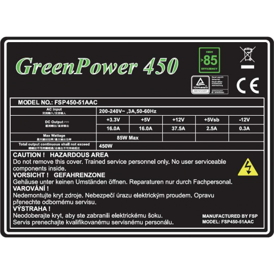 Fortron zdroj 450W GreenPower 450-51AAC, 80+ Bronze