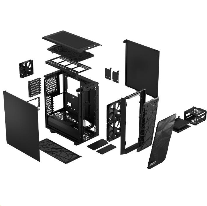 FRACTAL DESIGN skříň Meshify 2 Compact Black Solid, USB 3.1 Type-C, 2x USB 3.0, bez zdroje, mATX