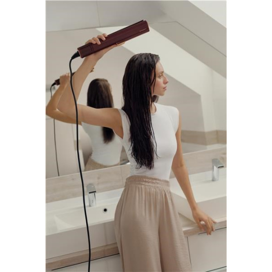 S AeroGlow žehličkou na vlasy můžete narovnávat vlasy téměř ihned po umytí – stačí jen lehce vysušit kořínky. Jemný proud vzduchu je současně suší a narovnává, takže ranní rutina je kratší a vlasová struktura zůstává chráněná. Je to pohodlí, které je vidět i cítit – méně poškození, více přirozeného lesku. Každý den.