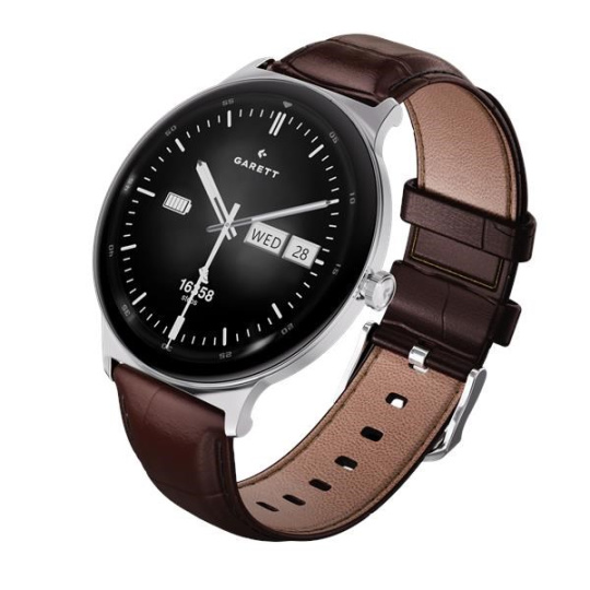 Elegantní chytré hodinky s 1,43” AMOLED displejem (466 × 466 px), ochranou Gorilla Glass a ultratenkým pouzdrem o tloušťce 7,5 mm. Nabízejí Bluetooth hovory, monitoring zdraví (tep, krevní tlak, SpO2, stres), sledování spánku a více než 100 sportovních režimů. Výdrž až 7 dní na jedno nabití, voděodolnost IP68, kompatibilita s Android a iOS (Garett Smart). Součástí balení je ocelový i kožený řemínek..... více