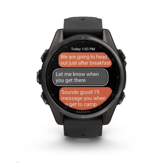Na hodinkách můžete přijímat e-maily, textové zprávy a upozornění na spárovaném telefonu Android nebo Apple. Hodinky rovněž podporují platby Garmin Pay, abyste se při svých dobrodružstvích mohli vydat kamkoliv a nestarat se o to, že jste něco zapomněli doma. S hodinkami Garmin fénix 8 máte totiž vždy všechno důležité po ruce - na svém zápěstí.