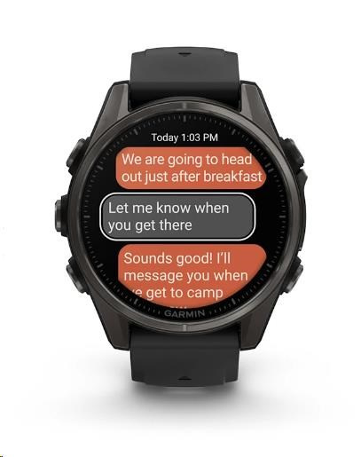 Na hodinkách můžete přijímat e-maily, textové zprávy a upozornění na spárovaném telefonu Android nebo Apple. Hodinky rovněž podporují platby Garmin Pay, abyste se při svých dobrodružstvích mohli vydat kamkoliv a nestarat se o to, že jste něco zapomněli doma. S hodinkami Garmin fénix 8 máte totiž vždy všechno důležité po ruce - na svém zápěstí.