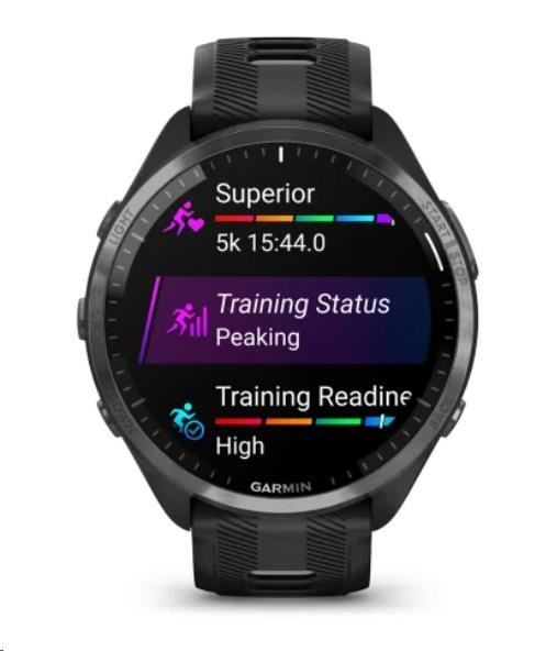 Hodinky Forerunner 965 vydrží až 23 dní v režimu chytrých hodinek. Po tuto dobu si můžete užívat jejich bohatých funkcí - doporučené denní tréninky, stav tréninku a připravenost k tréninku - to vše ještě předtím, než začnete s cvičením. Naplánujte si okružní trasu, dobu regenerace, využijte spánkového poradce a žijte a sportujte naplno!