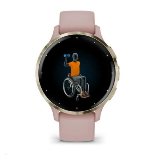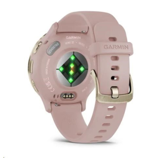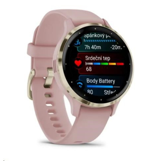 Garmin Venu® 3S, Nerezová luneta Soft Gold, pouzdro Dust Rose, silikonový řemínek