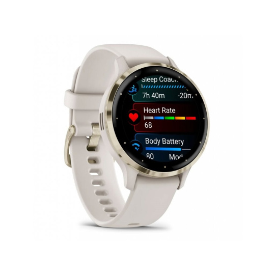 Garmin Venu® 3S, Nerezová luneta Soft Gold, pouzdro Ivory, silikonový řemínek