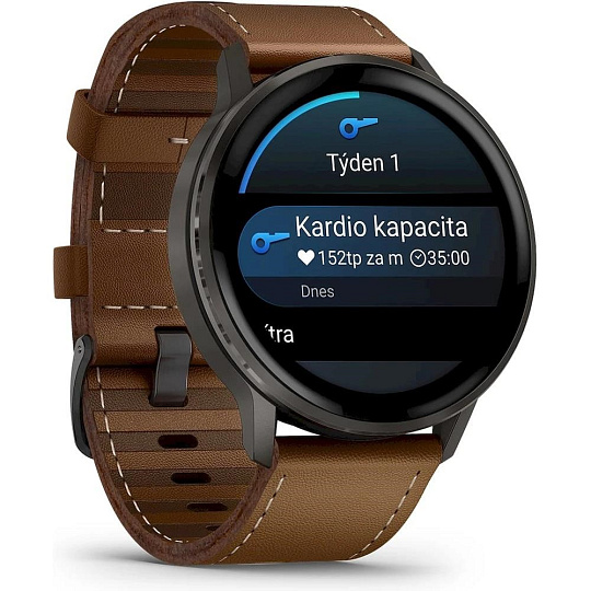 Garmin Venu 4 (45 mm) Slate / Černý silikonový řemínek a Hnědý kožený řemínek, EU