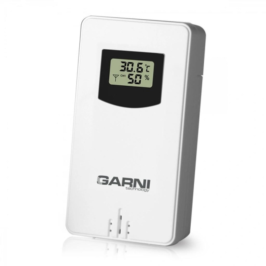 Bezdrátové čidlo pro měření teploty a relativní vlhkosti, určeno pro meteorologické stanice GARNI 439 Line, GARNI 545 Line  vlhkosti odolné, krytí IPX4 (odolné proti stříkající vodě) displej o rozměrech 19 x 11 mm velikost číslic na displeji: teplota a relativní vlhkost 4 mm měření teploty a relativní vlhkosti 3 kanály maximální RF výkon 10 dBm (10 mW) možnost postavení a zavěšení barva bílá.