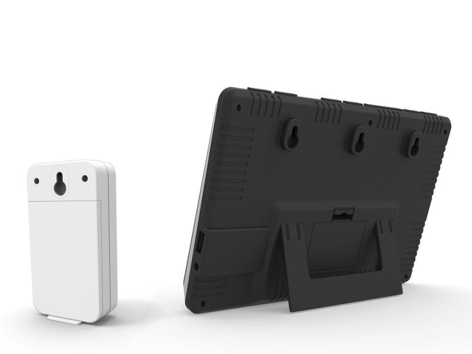 Třetí generace meteorologické stanice se špičkovým inverzním barevným VA displejem s časem řízeným rádiovým signálem DCF-77, budíkem, měřením vnitřní teploty, relativní vlhkosti a absolutního barometrického tlaku, bezdrátovým čidlem pro měření vnější teploty a relativní vlhkosti a USB portem pro napájení externích zařízení