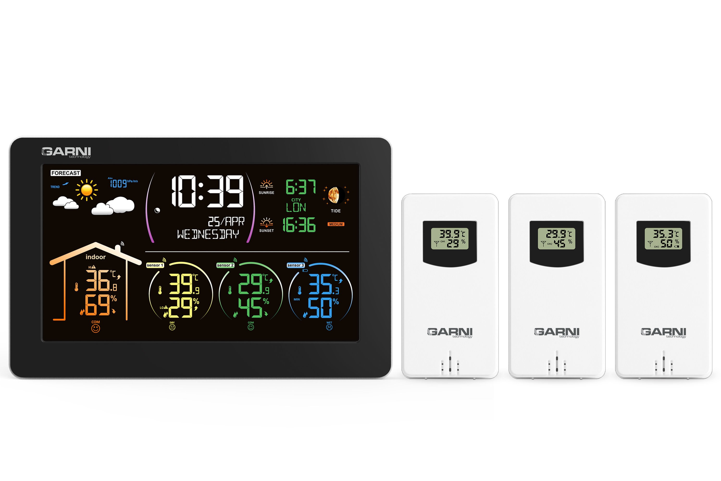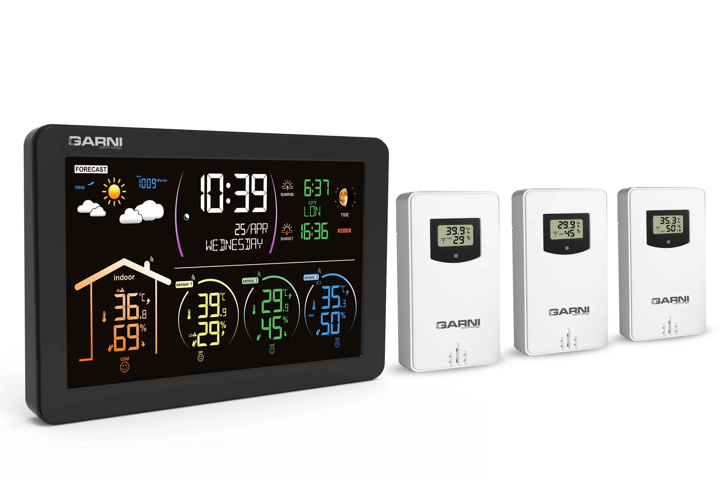 - 3 bezdrátová čidla GARNI 030H s displejem jsou součástí balení