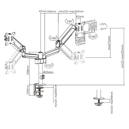 • Stolní držák monitoru s dvojitým ramenem monitoru