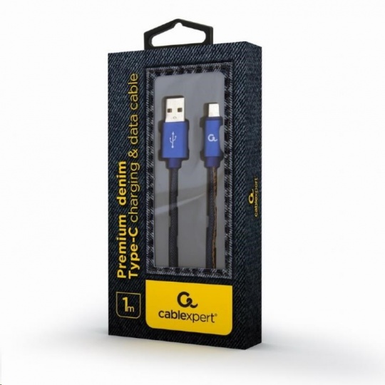 GEMBIRD Kabel USB 2.0 AM na Type-C kabel (AM/CM), 1m, opletený, jeans, blister, PREMIUM QUALITY