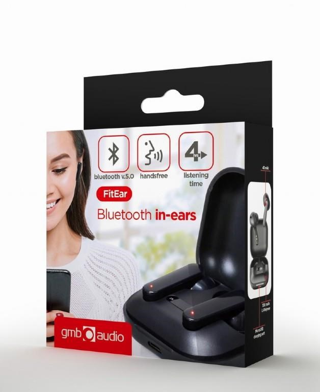 GEMBIRD sluchátka FitEar-X100B, Bluetooth, TWS, černá