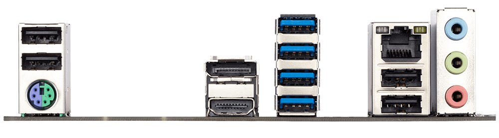 | Back Panel Connectors | 1 x PS/2 keyboard/mouse port 1 x DisplayPort 1 x HDMI port 4 x USB 3.2 Gen 1 ports 4 x USB 2.0/1.1 ports 1 x RJ-45 port 3 x audio jacks |