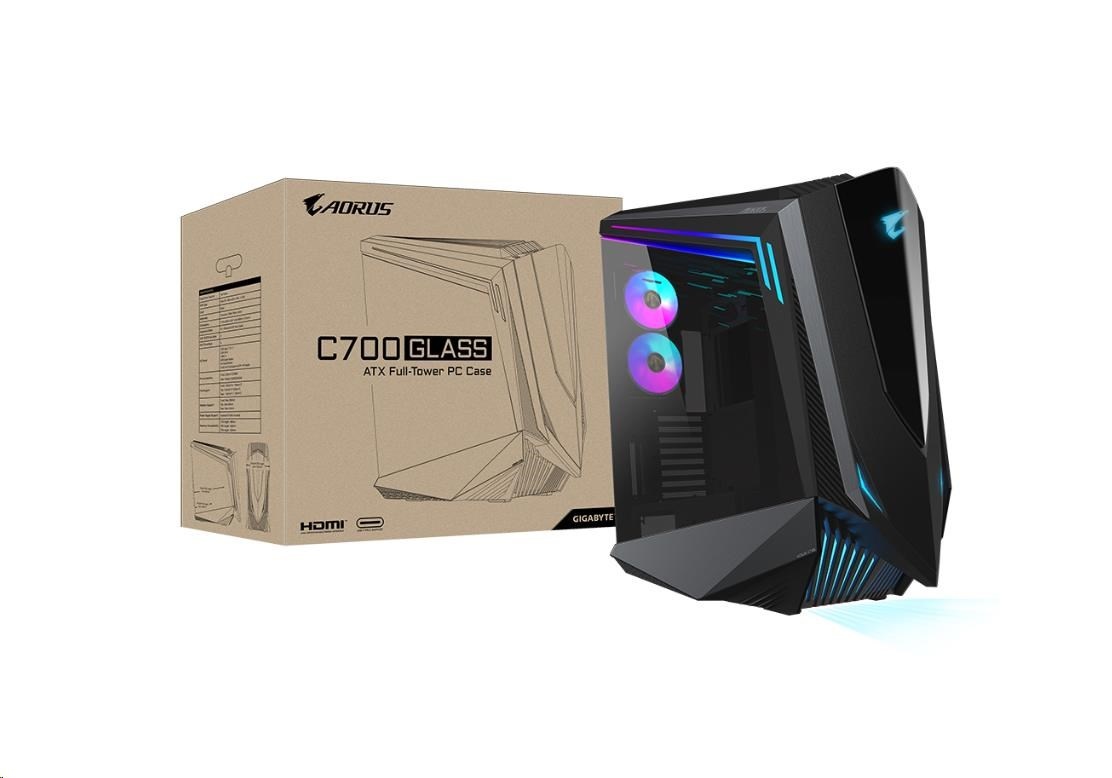 GIGABYTE case AORUS C700 GLASS, bez zdroje, průhledná bočnice, Full Tower, černá