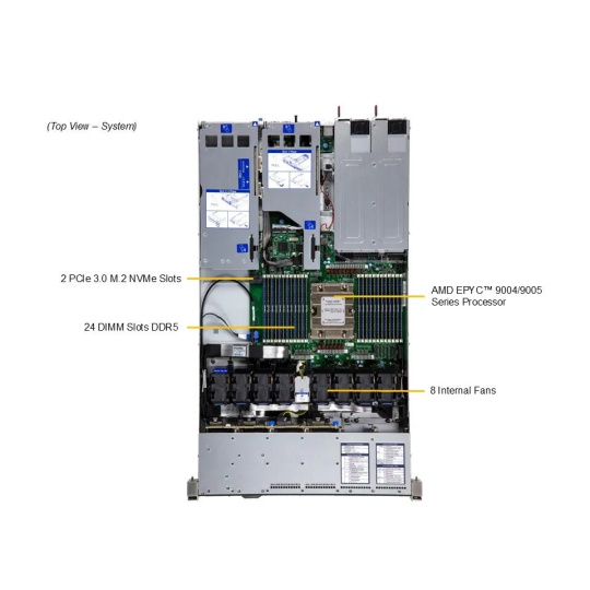 | Procesory | 1x AMD EPYC™ 9004/9005* Series Processors (*Podpora AMD EPYC™ 9005 vyžaduje revizi desky 2.x) |